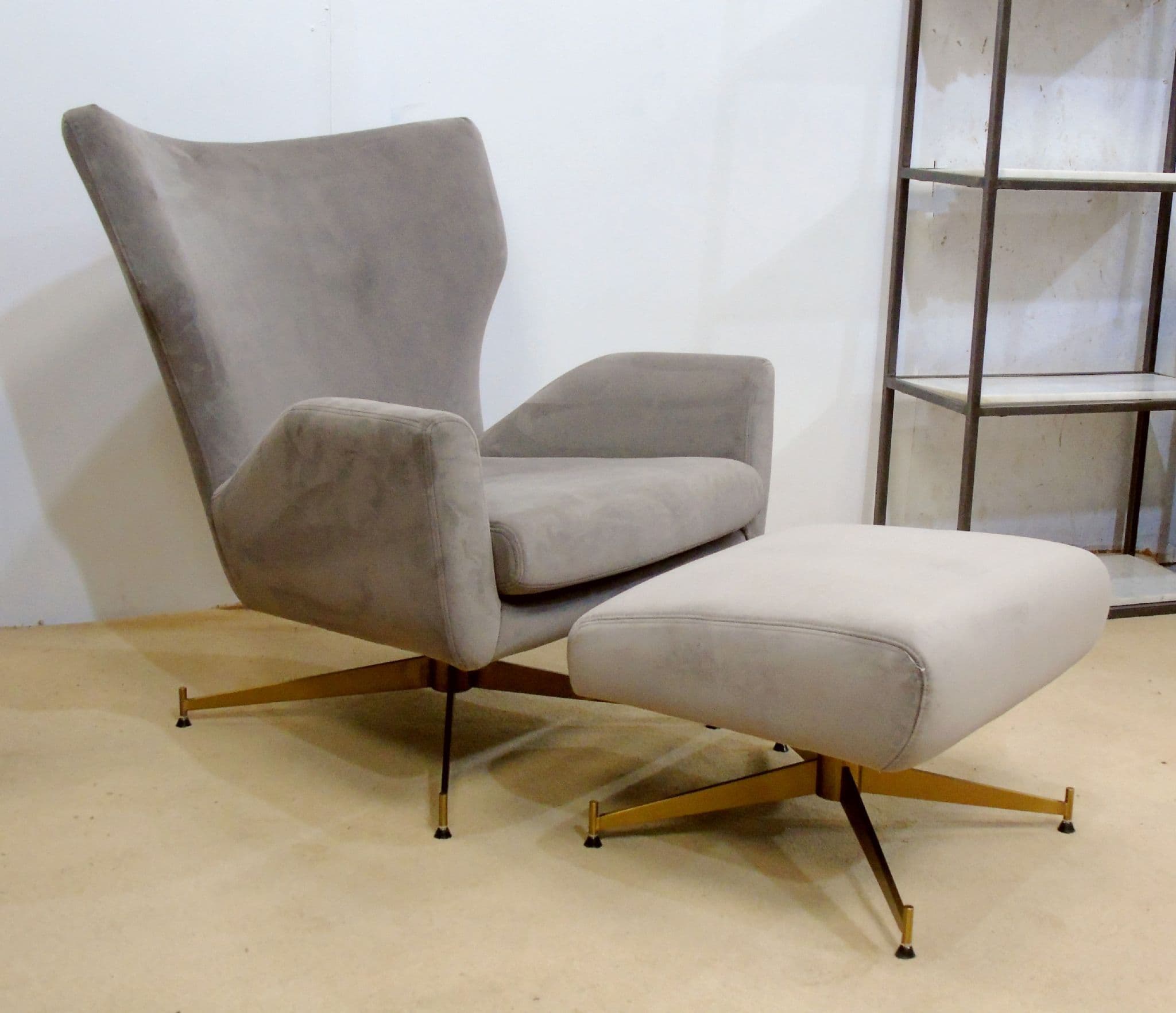 Osmore Swivel Accent Chair And Footstool Mink Velvet